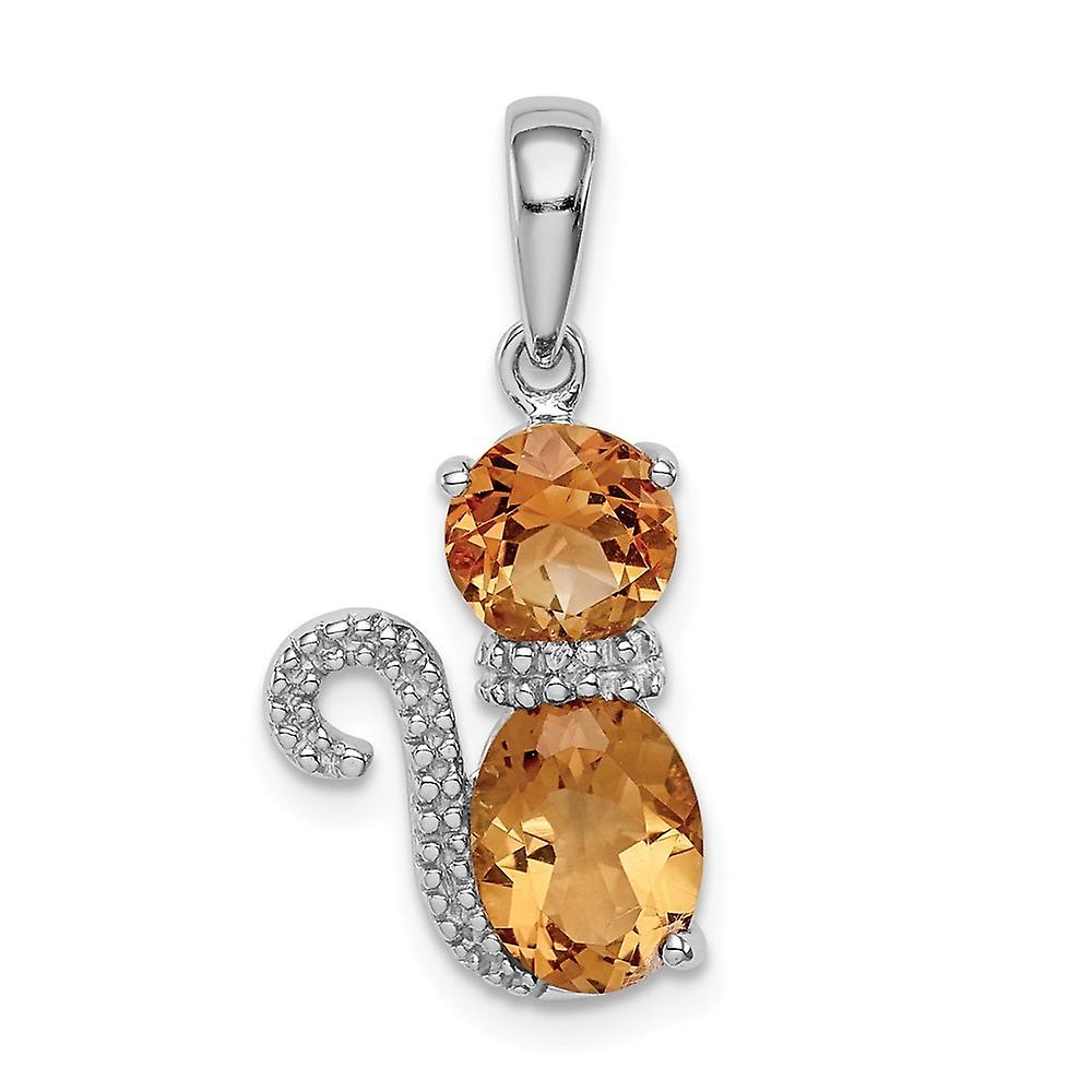925 Sterling Silver Polished Citrine and Diamond Cat Pendant Necklace-Pendant for Women