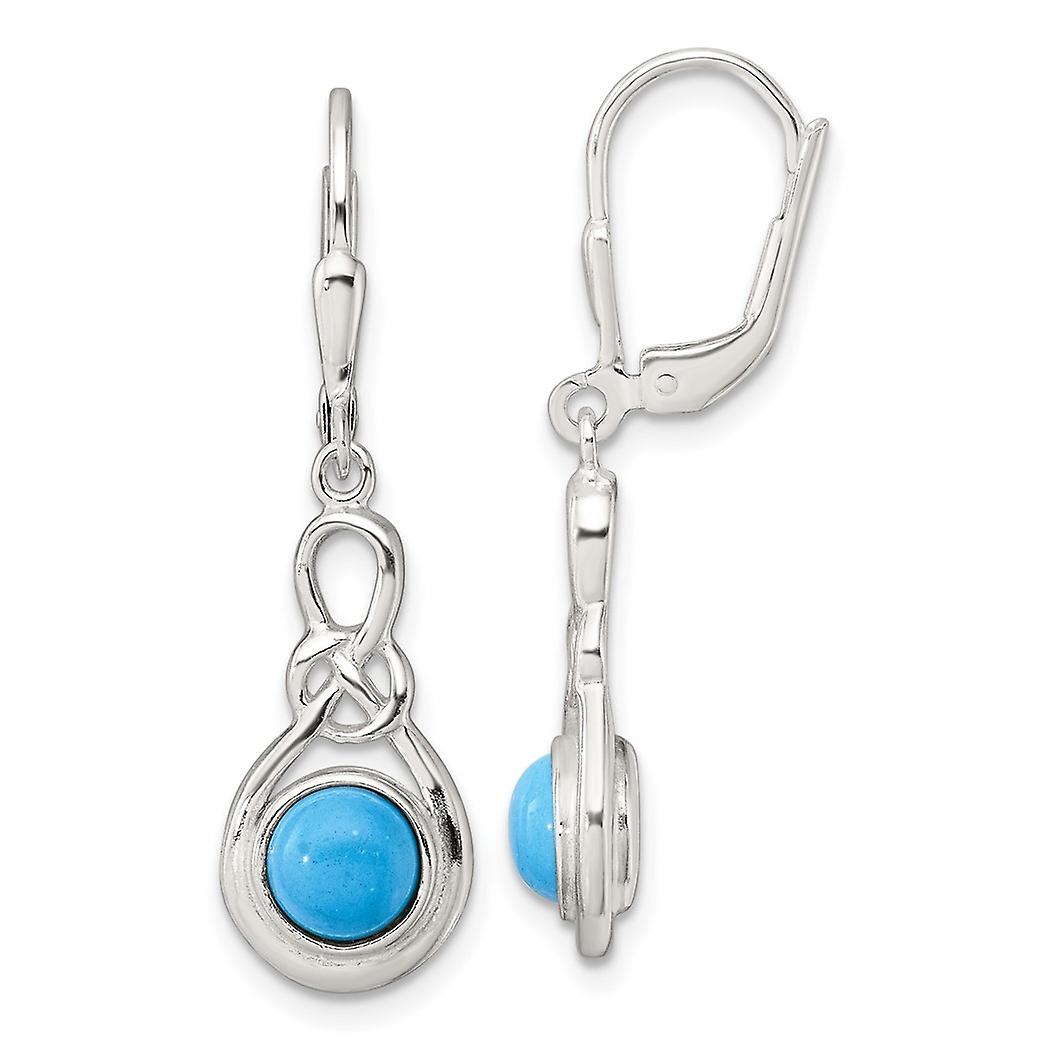 Sterling Silver Polished Simulated Turquoise Knot Leverback Dangle Earrings - Measures 36.5x9.85mm Wide - 3.8 Grams In Sterling Silver - - Width of Item: 9.85 mm - Length of Item: 36.5 mm - Earring Closure: Leverback - Earring Type: Drop & Dangle - Finish: Polished - - [ Potential Enhancement Methods: turquoise ] - Usually stabilized with plastic to enhance durability. Sometimes powdered material is compressed with a binding agent under extreme pressure and heated to bind together small pieces of natural material into a larger whole. Dyed to enhance color. - [ Care and Handling: turquoise ] - Do not use ultrasonic cleaner or steamer. Avoid contact with cosmetics, hair spray, perfume and household chemicals. Clean with a damp cloth or soft brush. -