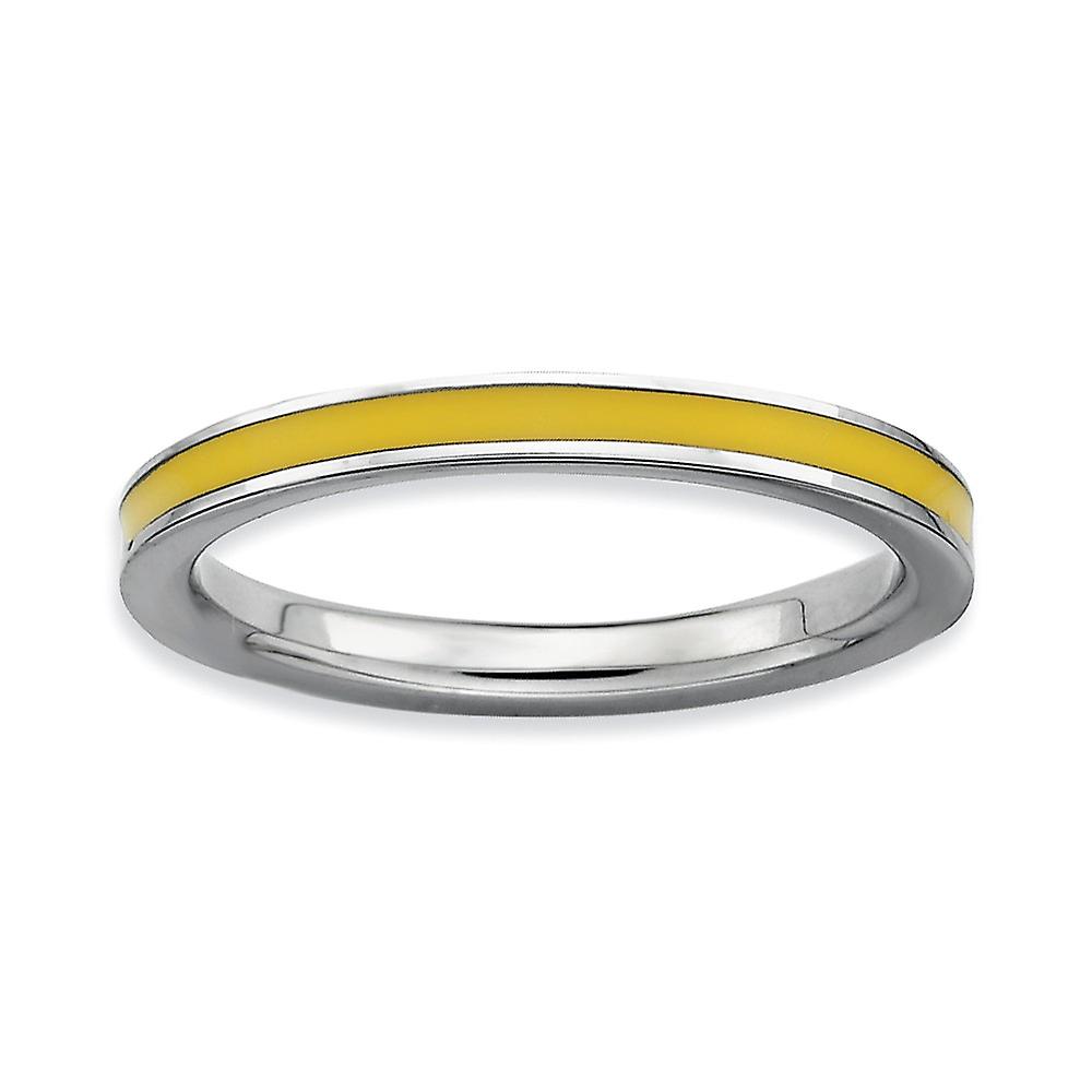 925 Sterling Silver Polished Stackable Yellow Enameled 2.25mm Ring-Stackable-Ring for Women - Ring Size: 5 to 10