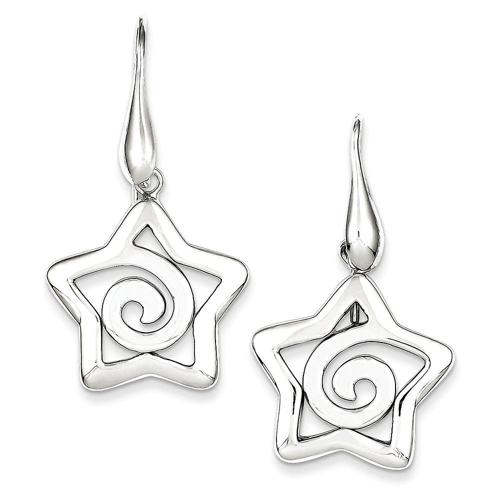 925 Sterling Silver Polished Star Dangle Post Earrings 42x24mm Wide-Dangle Earring for Women