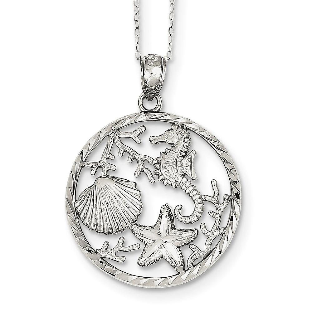 925 Sterling Silver Polished Spring-Ring Seahorse StarFish and Shell Pendant Necklace 18 Inch 25mm Wide-Pendant for Wome