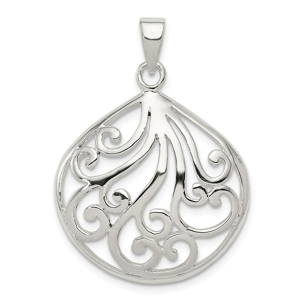 925 Sterling Silver Polished Swirl Pendant Necklace 27.5mm long-Pendant for Women
