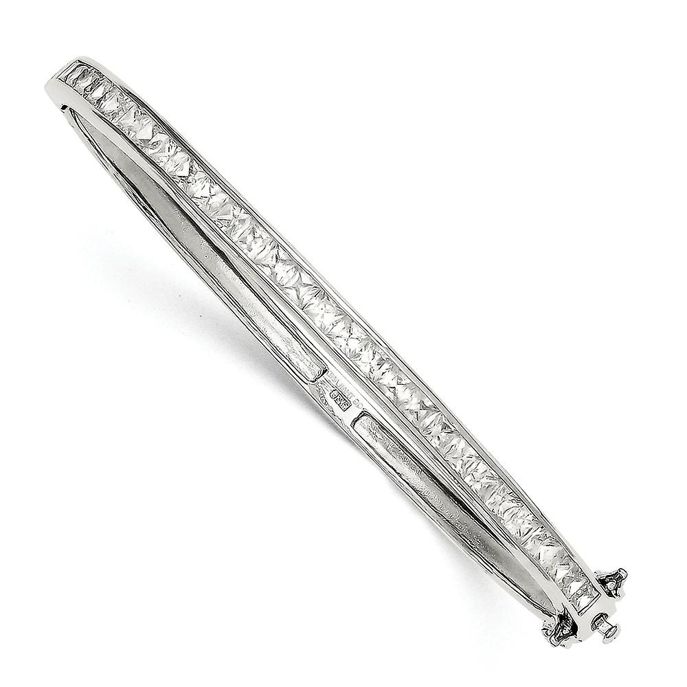 925 Sterling Silver Polished Safety bar Box Catch Closure Cubic Zirconia Hinged Bangle Bracelet 5mm Wide Cuff-Bracelet f