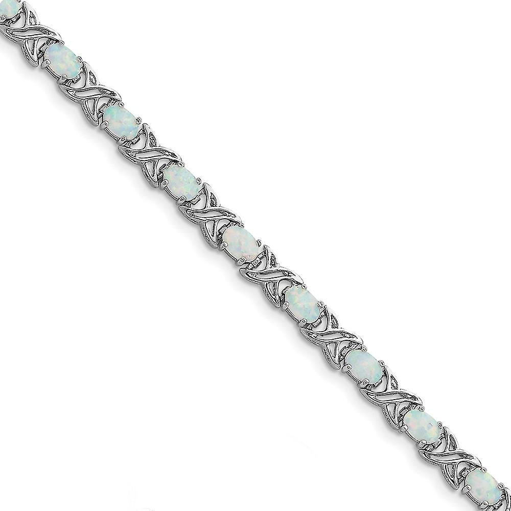 925 Sterling Silver Polished Safety bar Box Catch Closure White Simulated Opal XO Bracelet 7 Inch-Box Clasp 6mm Wide Lin