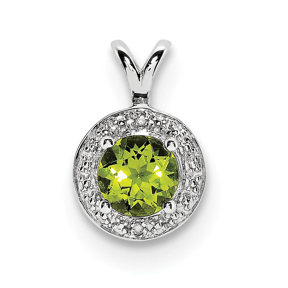925 Sterling Silver Polished Diamond and Peridot Pendant Necklace 14x10mm Wide-Pendant for Women