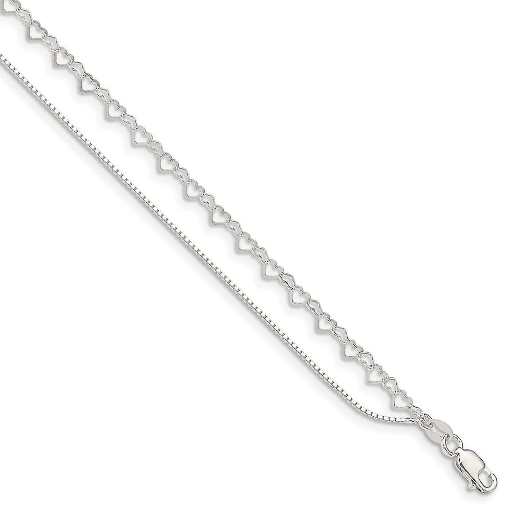 925 Sterling Silver Polished Double Strand Love Hearts With 1 In Ext Anklet 9 Inch 3.5mm Wide-Anklet for Women