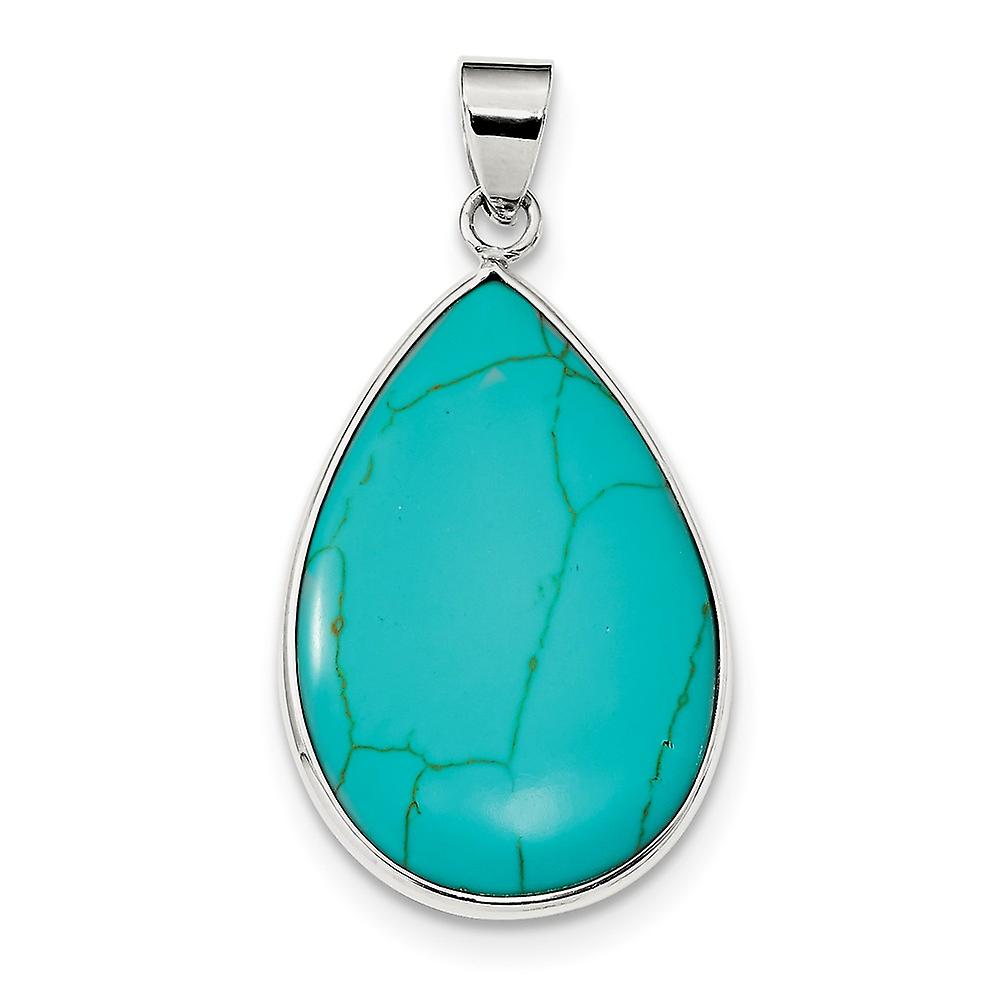 925 Sterling Silver Polished Teardrop Simulated Turquoise Pendant Necklace 40x24mm Wide-Pendant for Women