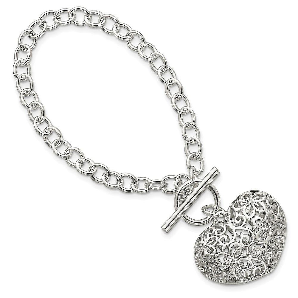 925 Sterling Silver Polished Puffed Love Heart Toggle Bracelet 32mm Wide Link-Bracelet for Women
