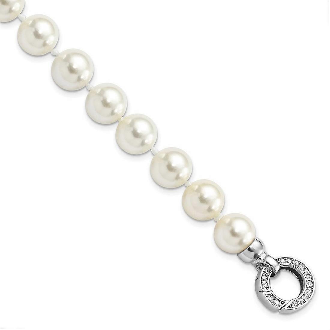 925 Sterling Silver Polished Hand knotted Majestik Rhodium Plated10 11mm White Imitat Shell Pearl Fancy Bracelet 7.5 Inc