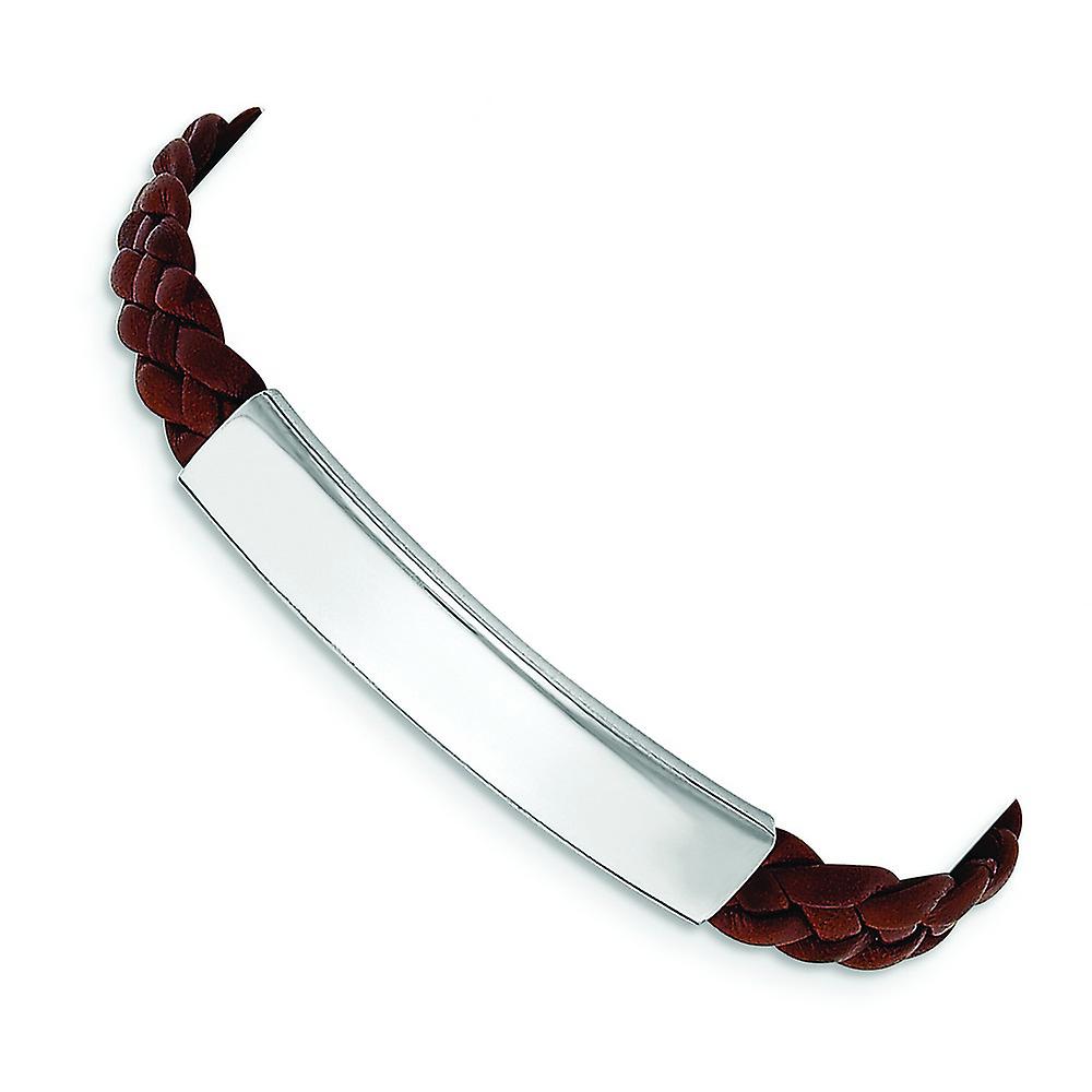 925 Sterling Silver Polished Brown Braided Leather Bracelet 7 Inch Lobster Claw 5mm Wide Link-Bracelet for Women