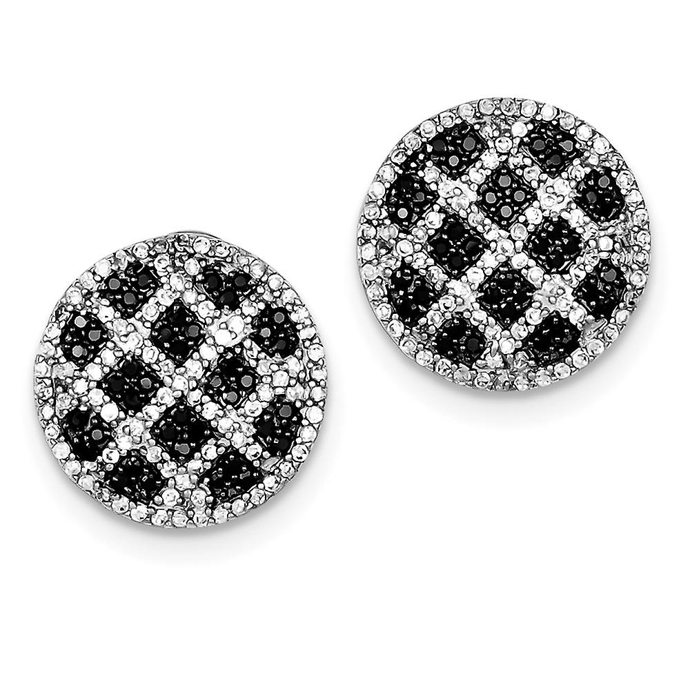 925 Sterling Silver Polished Black and White Cubic Zirconia Round Omega Back Earrings 18x18mm Wide Stud Earring for Wome
