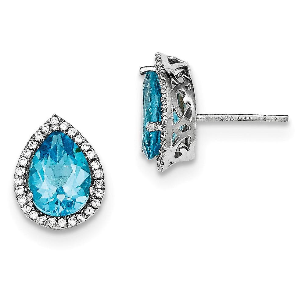 925 Sterling Silver Polished Blue Topaz and Cubic Zirconia Post Earrings 14x11mm Wide Stud Earring for Women