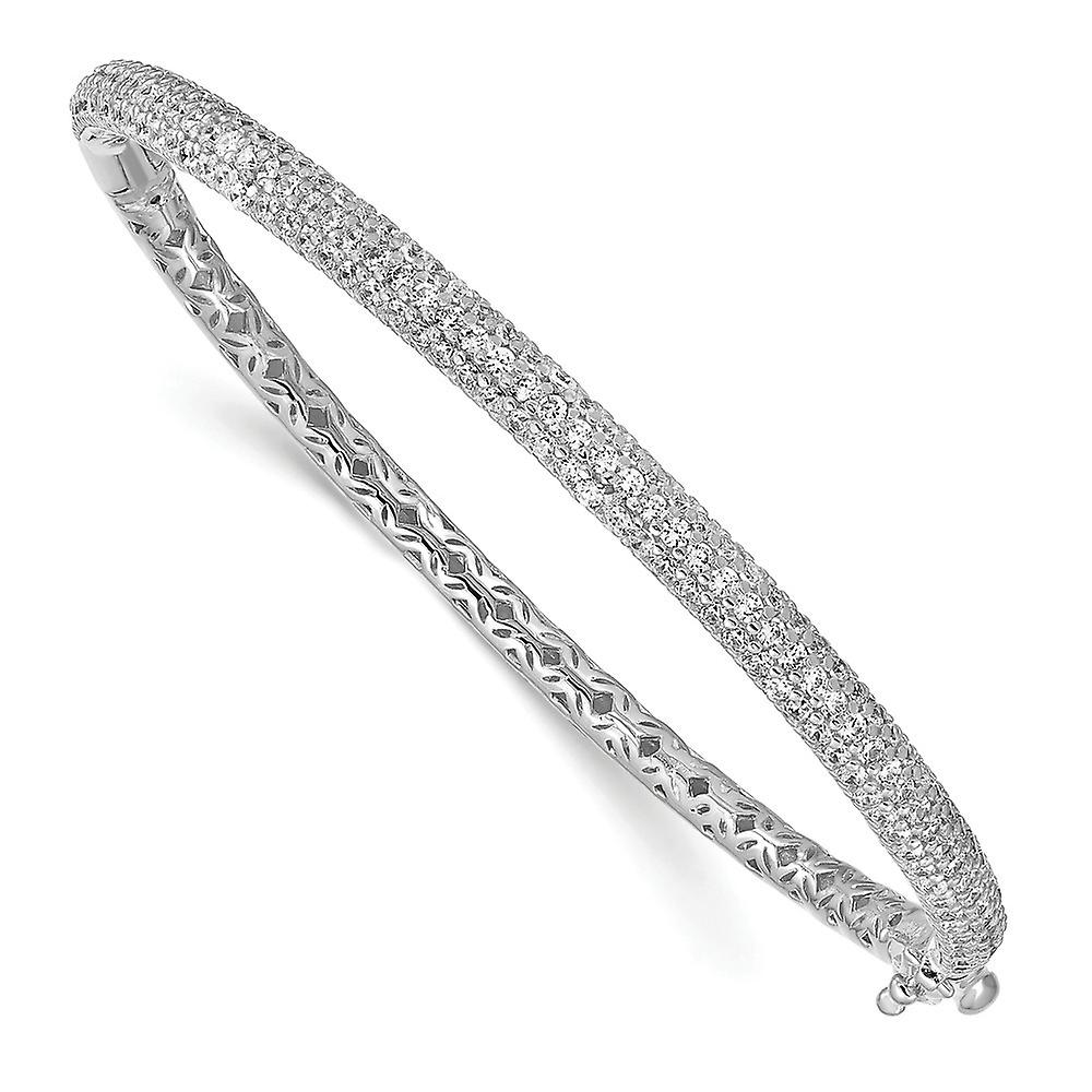 925 Sterling Silver Polished Prong set Rhodium Plated With Cubic Zirconia Hinged Bangle Bracelet 4mm Wide Cuff-Bracelet