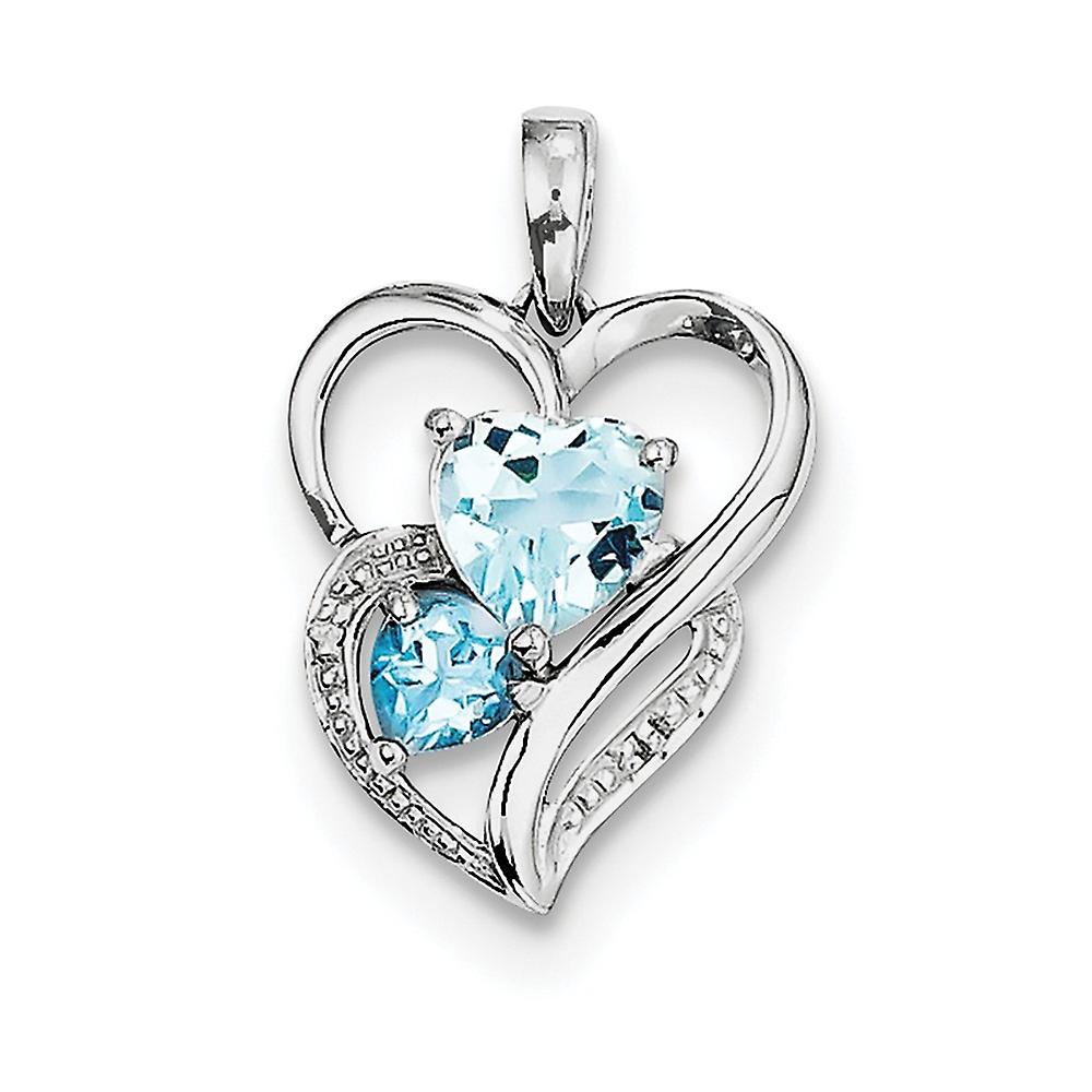 925 Sterling Silver Polished Prong set Rhodium Plated Diamond and Sky Blue Topaz Pendant Necklace 21x14mm Wide-Pendant f