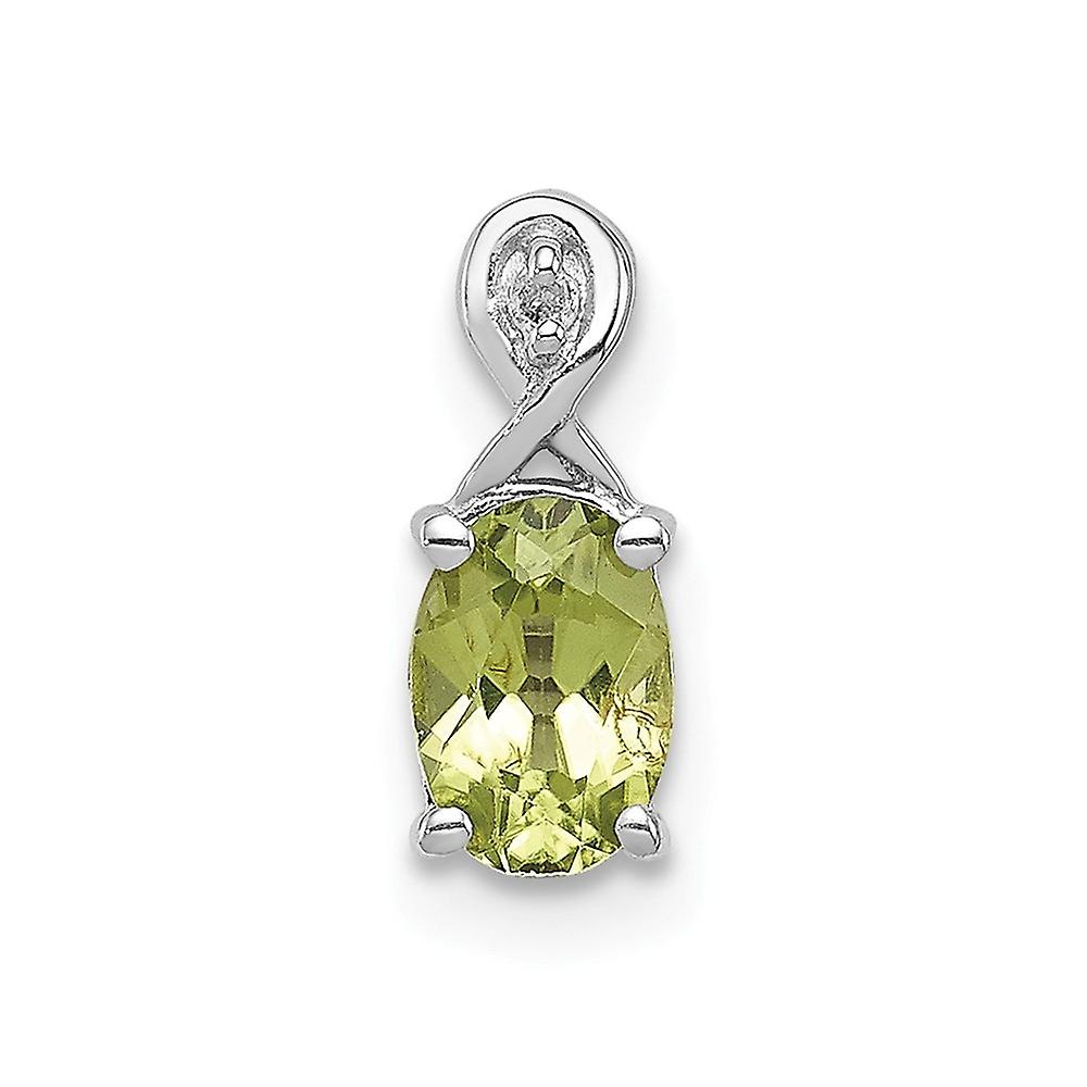 925 Sterling Silver Polished Prong set Rhodium Plated Diamond and Peridot Oval Pendant Necklace 10x5mm Wide-Pendant for