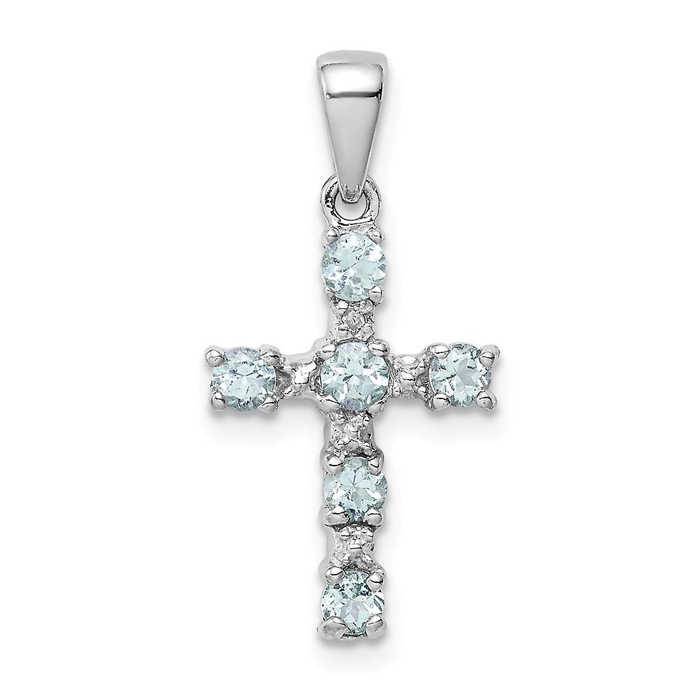 925 Sterling Silver Polished Fancy cut out back Rhodium Aqua and Diamond Religious Faith Cross Pendant Necklace 23x12mm