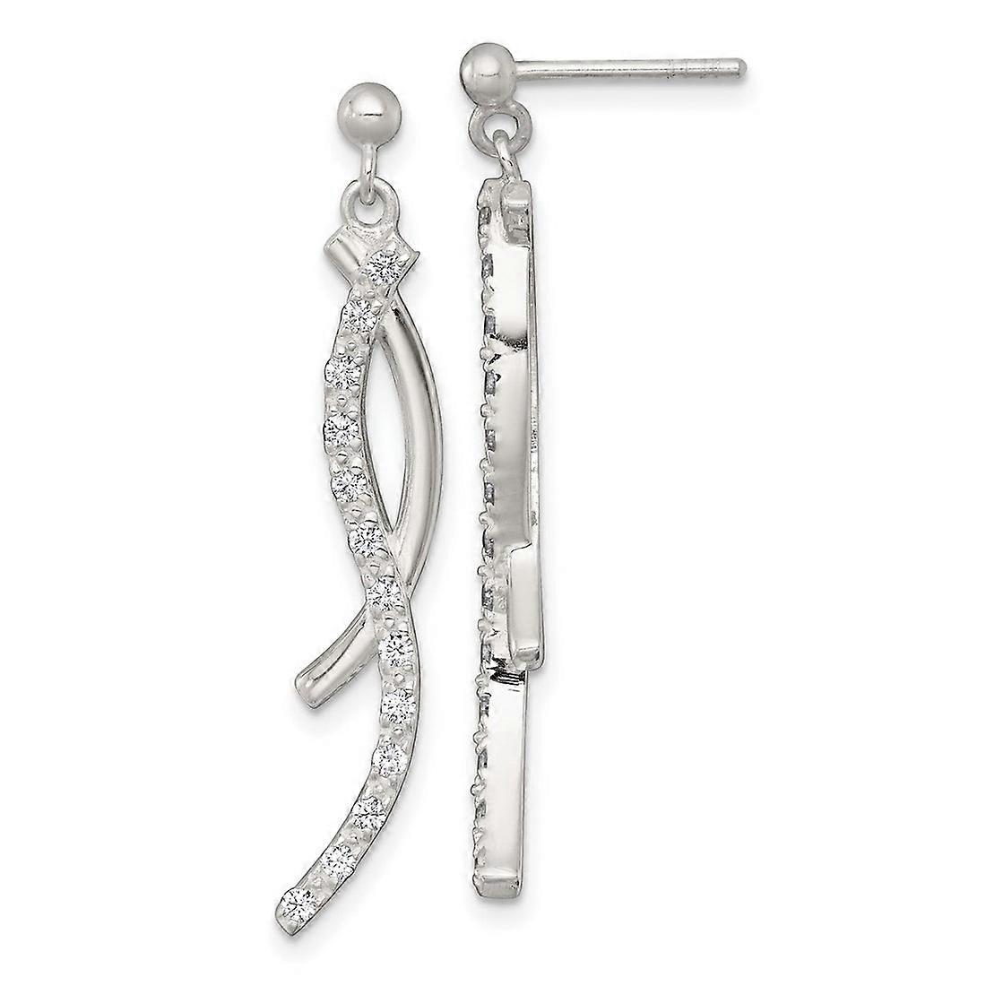 925 Sterling Silver Polished Fancy Cubic Zirconia Post Long Drop Dangle Earrings 37.9x5.45mm Wide-Dangle Earring for Wom
