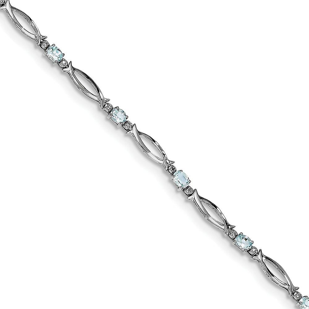 925 Sterling Silver Polished Fancy Lobster Closure Aquamarine and Diamond Bracelet 3mm Wide Link-Bracelet for Women