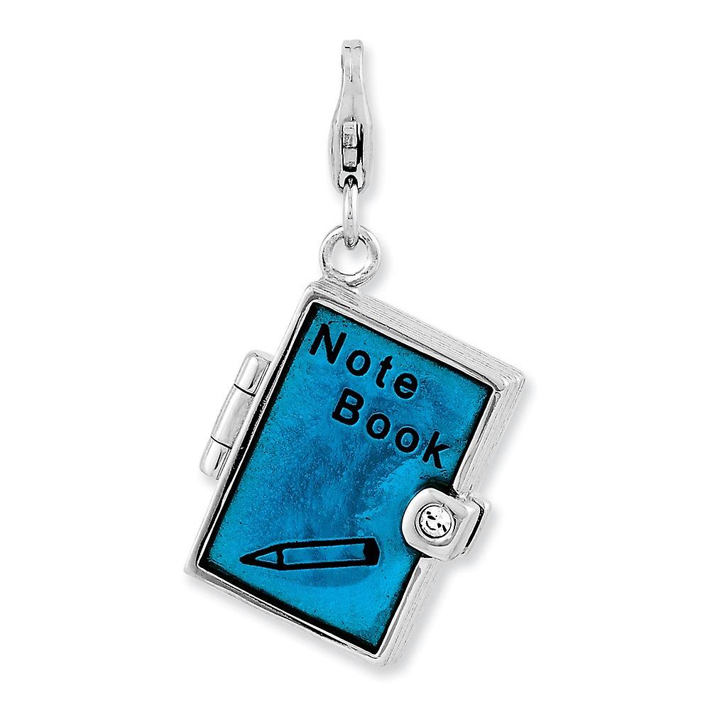 Sterling Silver Enameled 3-d Note Book With Lobster Clasp Charm - Measures 32x17mm Wide - 5.4 Grams in Sterling Silver - Product Attributes: - Fancy Lobster Closure - Polished - - Charm/Element Width: 17 mm - Width of Item: 17 mm - Charm/Element Length: 23 mm - Length of Item: 32 mm - Bail Length: 9 mm - Bail Width: 3 mm - Feature: Lobster Clasp - Feature 2: 3D - Feature 3: Solid - - This Item Does Not Ship With a Chain