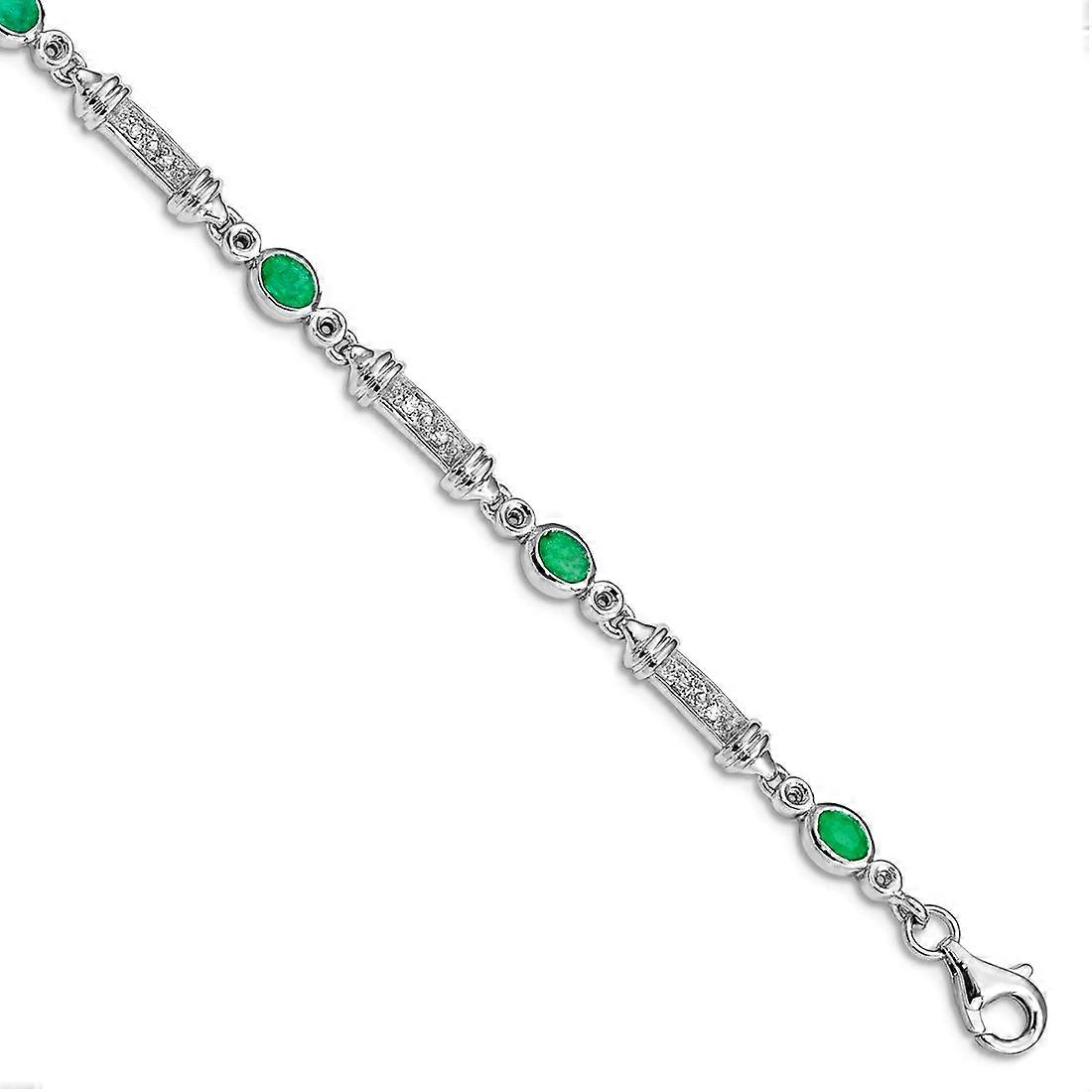 925 Sterling Silver Polished Fancy Lobster Closure Emerald and Diamond Bracelet 4mm Wide Link-Bracelet for Women