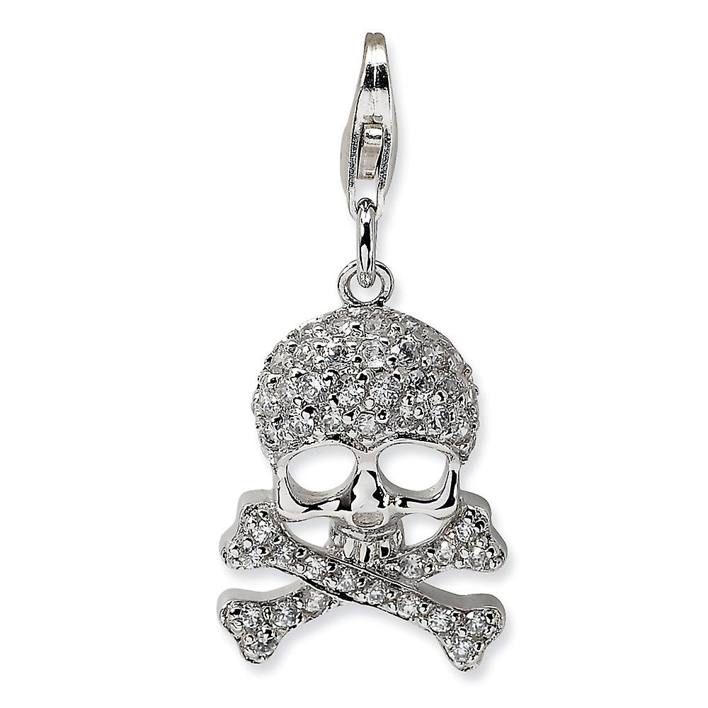 925 Sterling Silver Polished Fancy Lobster Closure Cubic Zirconia Skull and Religious Faith Cross Bones With-Lobster Cla