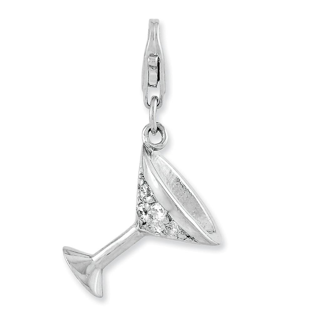 925 Sterling Silver Polished Fancy Lobster Closure Cubic Zirconia Rhodium Plated 3 d Martini Glass With-Lobster Clasp Ch