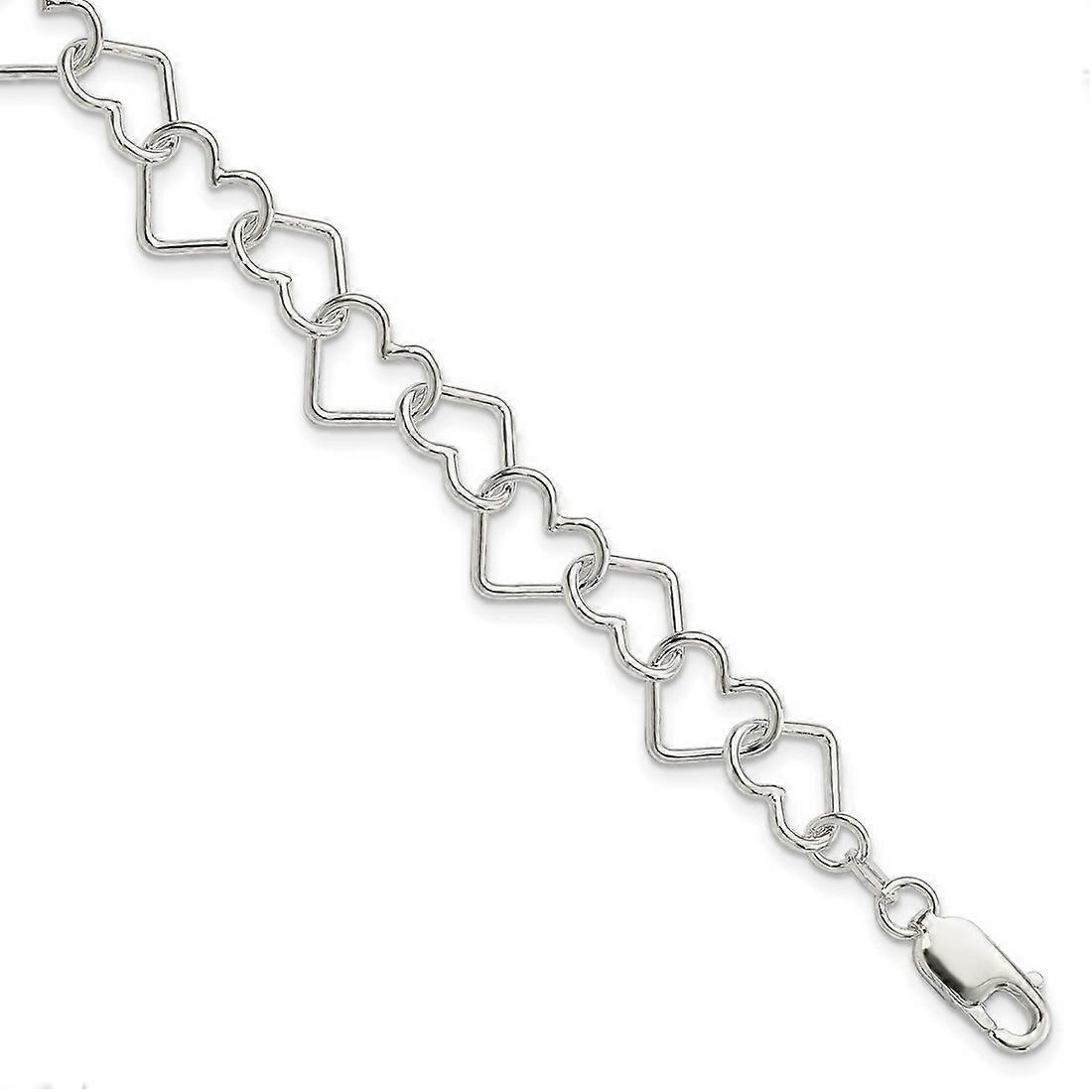 925 Sterling Silver Polished Fancy Lobster Closure-Fancy Large Love Heart Bracelet-Lobster Claw 10.5mm Wide Link-Bracele