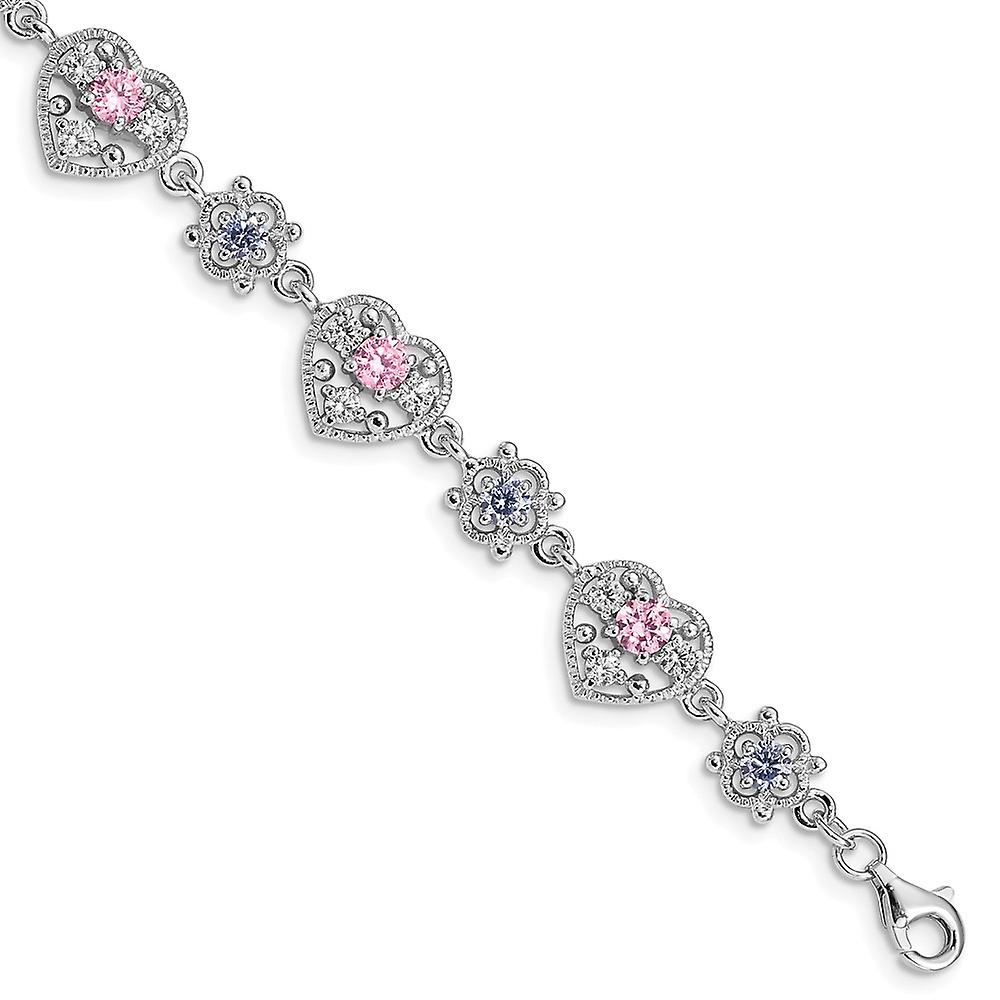 925 Sterling Silver Polished Fancy Lobster Closure 7inch Lavender and Pink Cubic Zirconia Bracelet-Lobster Claw Link-Bra