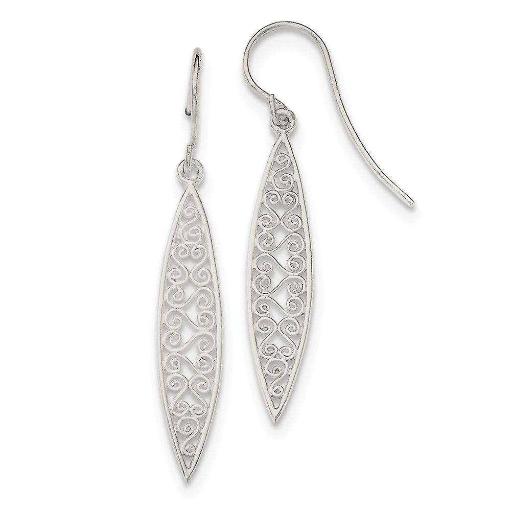 925 Sterling Silver Polished Fillagree Shepherd Hook Earrings 47x7mm Wide Dangle Earring for Women
