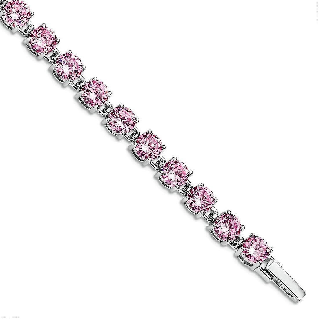 925 Sterling Silver Polished Fold over Pink Cubic Zirconia Bracelet 7 Inch-Fold-Over Catch Link-Bracelet for Women