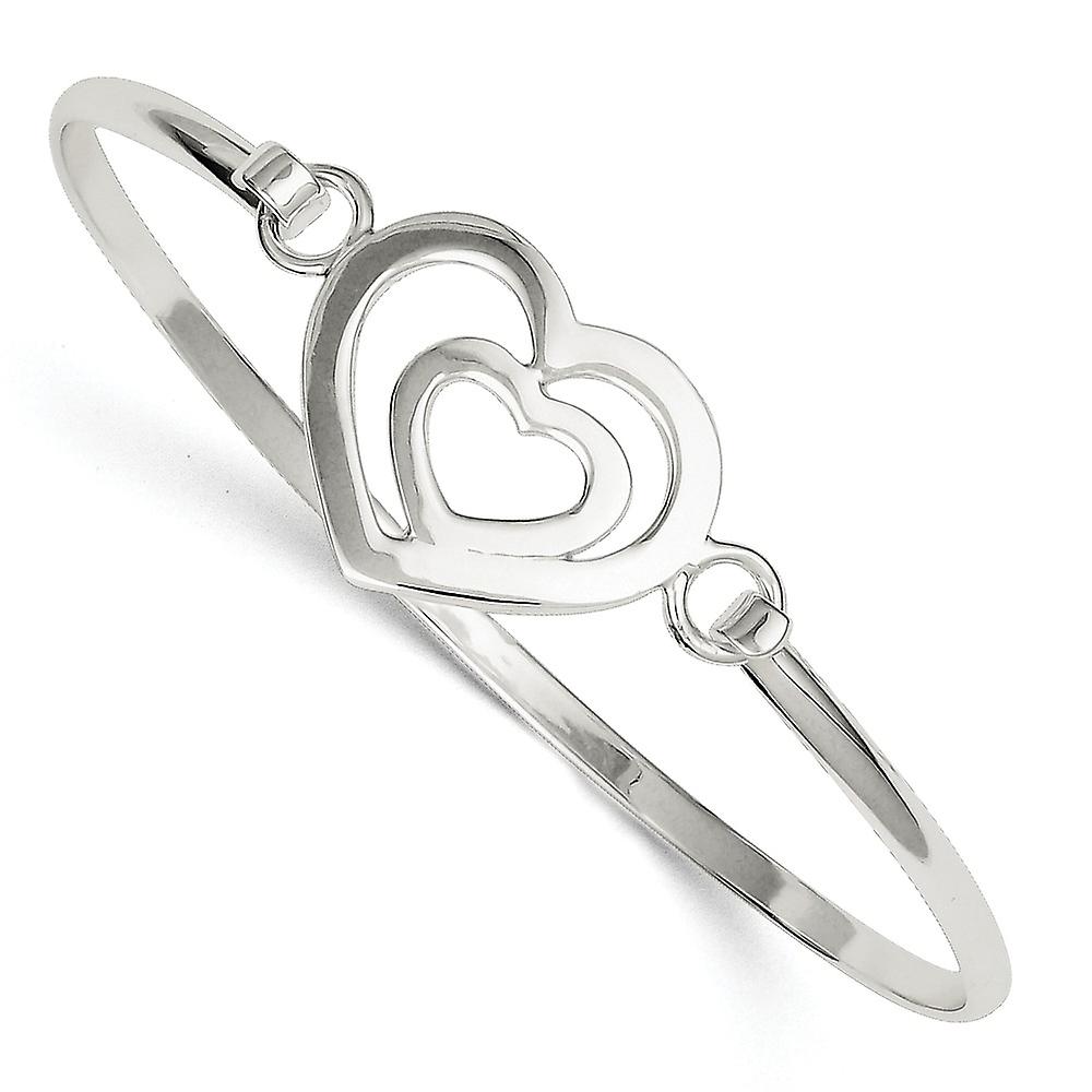 925 Sterling Silver Polished Flexible Love Heart Within A-Heart Bangle Bracelet 3mm Wide Cuff-Bracelet for Women
