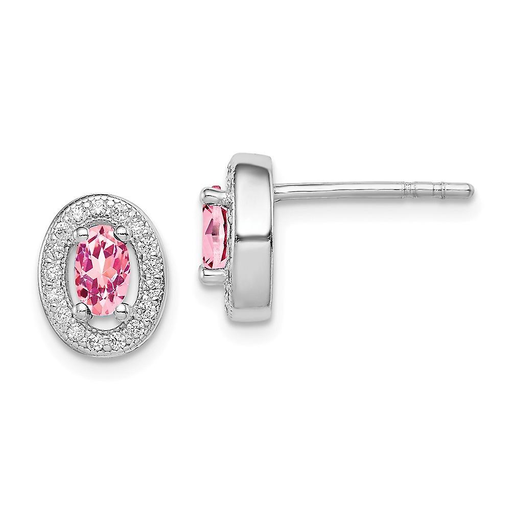 925 Sterling Silver Polished Post With Pink and White Cubic Zirconia Oval Stud Earrings 9x8mm Wide-Stud Earring for Wome