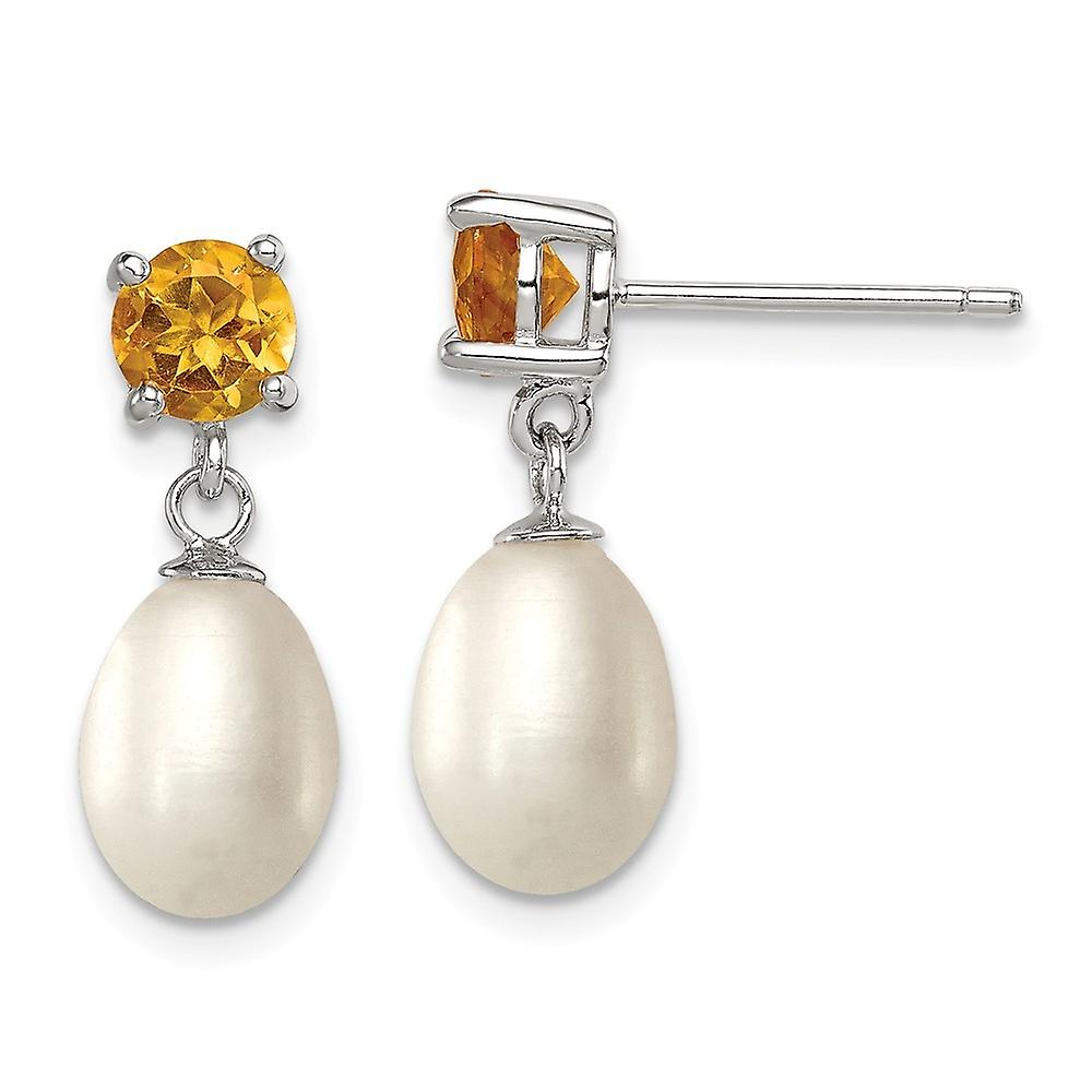 925 Sterling Silver Polished Post Citrine and 7 8mm Freshwater Cultured Pearl Teardrop Earrings 20x8mm Wide Dangle Earri