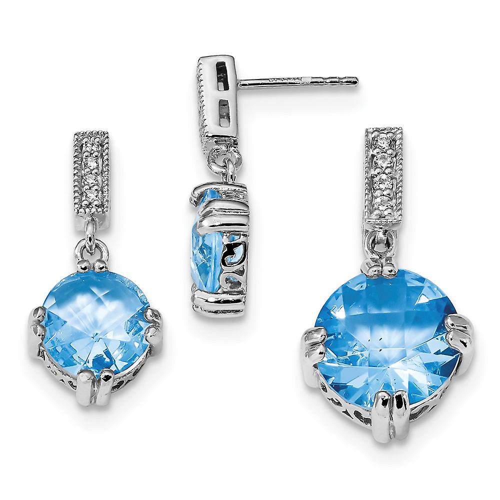 925 Sterling Silver Polished Post Blue and Clear Cubic Zirconia Pendant Necklace and Earring Set 25x12mm Wide Jewelry-Se