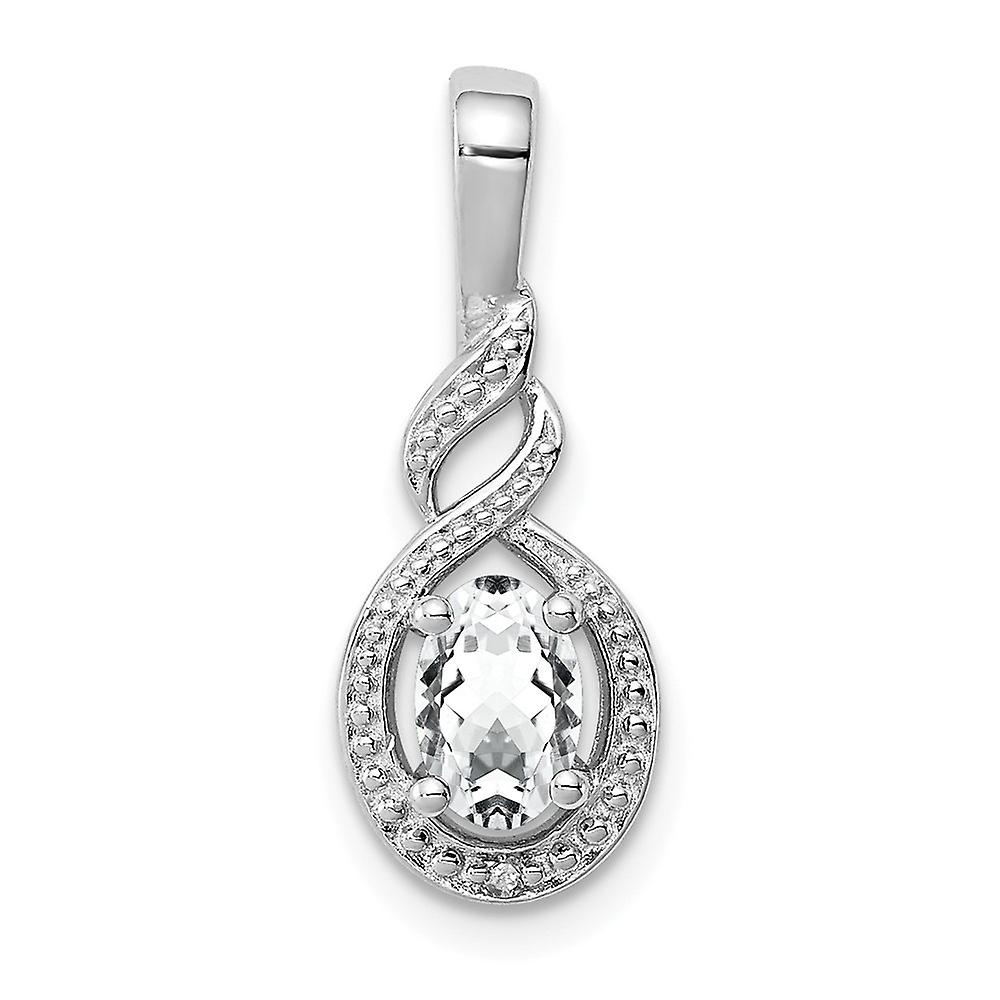 925 Sterling Silver Polished White Topaz and Diamond Pendant Necklace 13x7mm Wide-Pendant for Women