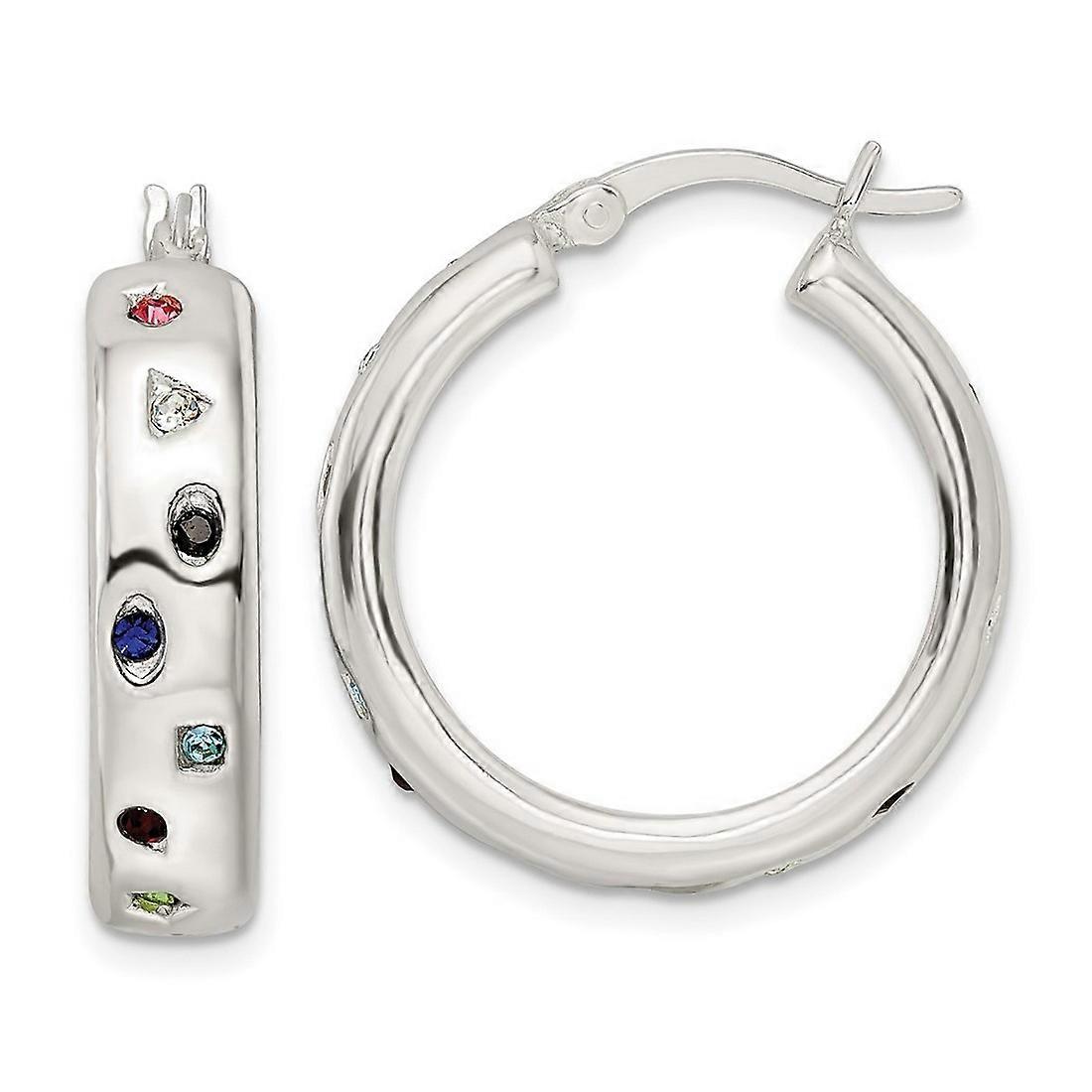925 Sterling Silver Polished Multi color Cubic Zirconia Circle Hoop Earrings 25x25mm Wide 6.5mm Thick-Hoop Earring for W
