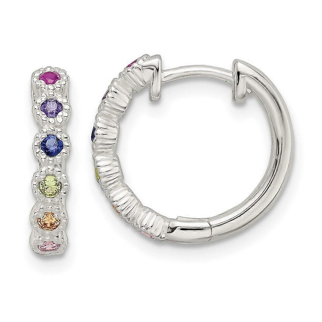925 Sterling Silver Polished Multicolor Cubic Zirconia Round Hinged Hoop Earrings 15.38x16.4mm Wide 3.5mm Thick-Hoop Ear