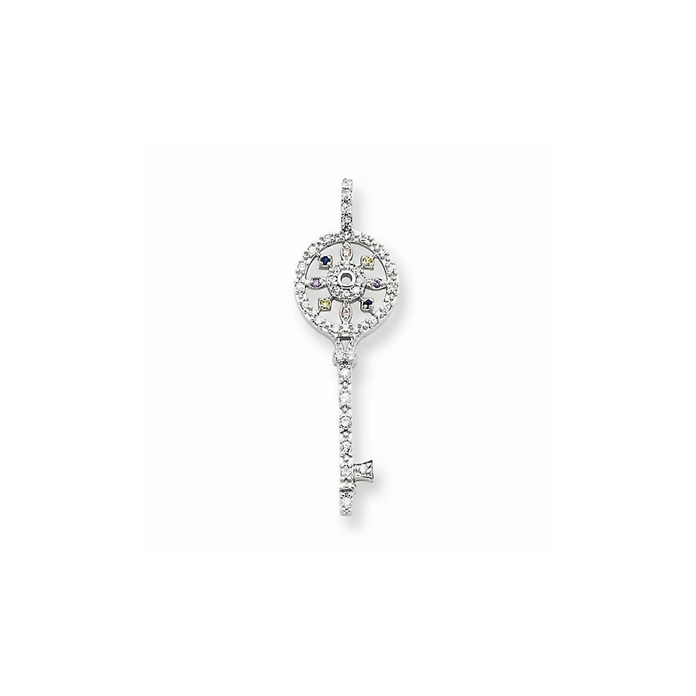 925 Sterling Silver Polished Multi Cubic Zirconia Key Pendant Necklace 40x13mm Wide-Pendant for Women
