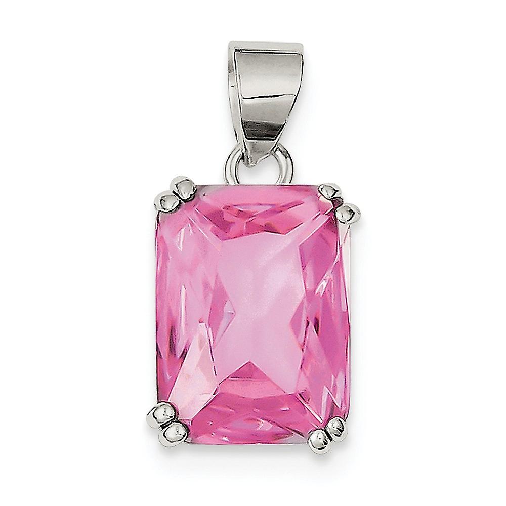 925 Sterling Silver Polished Rectangle Pink Cubic Zirconia Pendant Necklace 25x12mm Wide-Pendant for Women