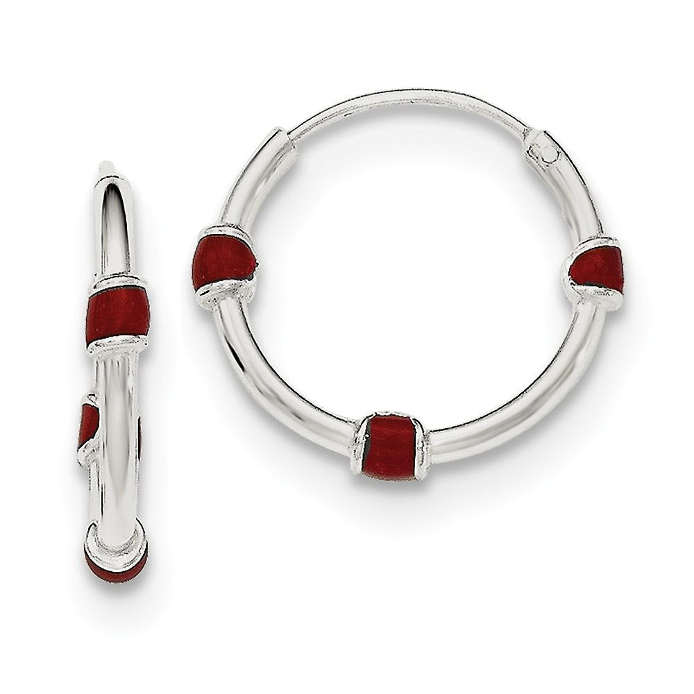 925 Sterling Silver Polished Red Enamel Hoop Earrings 18x18mm Wide 3mm Thick-Hoop Earring for Women