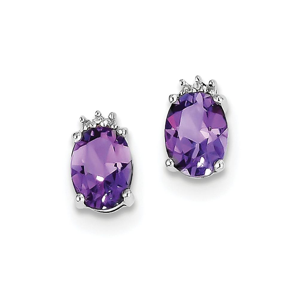 925 Sterling Silver Polished Rhodium Oval Amethyst and Diamond Post Earrings 10x6mm Wide Stud Earring for Women