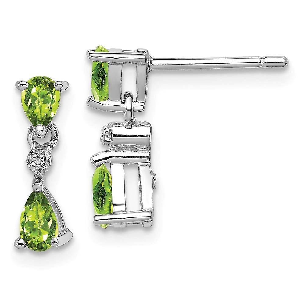 925 Sterling Silver Polished Rhodium Pear Peridot and Diamond Post Earrings 13x4mm Wide Dangle Earring for Women
