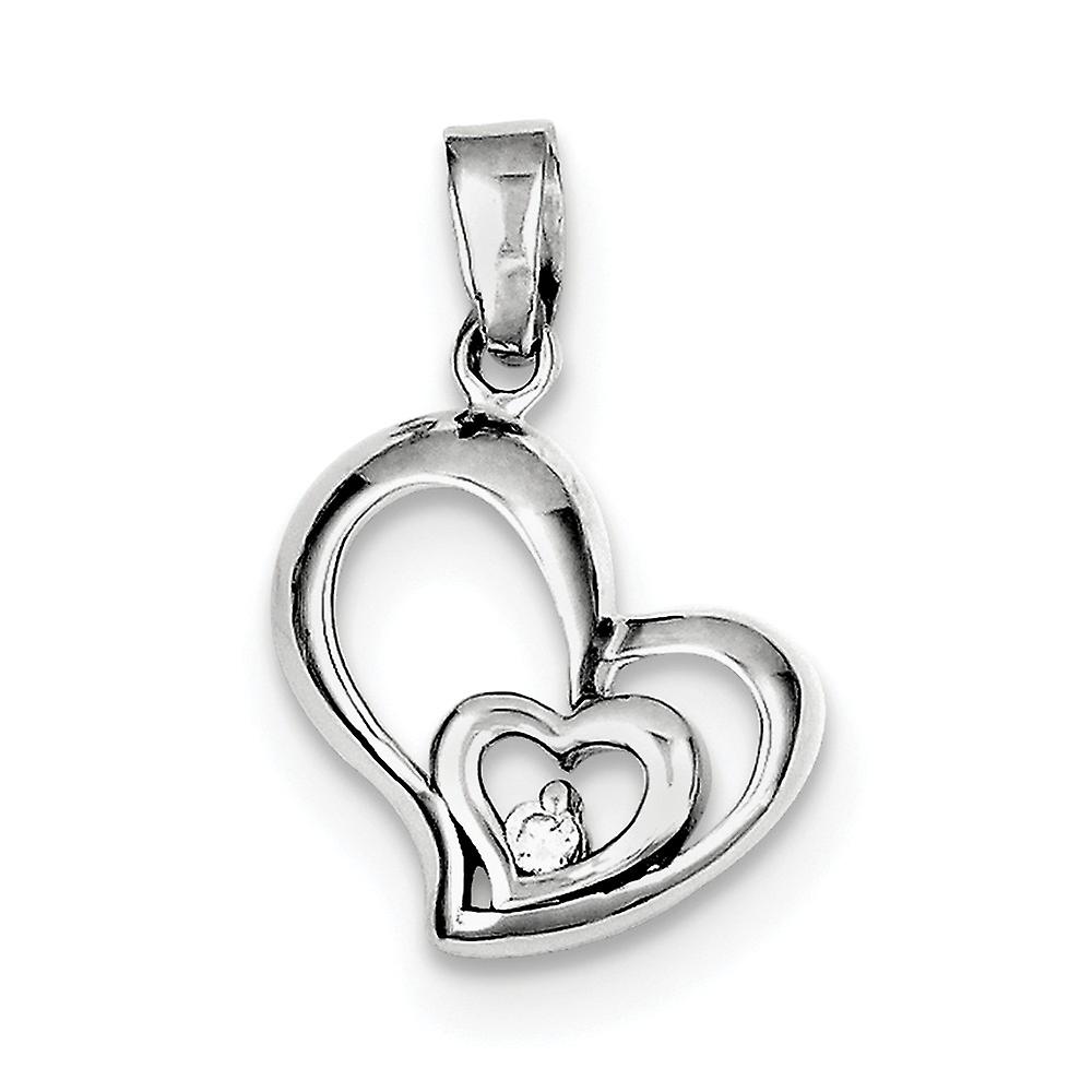 925 Sterling Silver Polished Rhodium Plated Cubic Zirconia Love Heart Pendant Necklace 18x15mm Wide-Pendant for Women