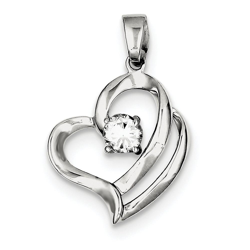 925 Sterling Silver Polished Rhodium Plated Cubic Zirconia Love Heart Pendant Necklace 22x18mm Wide-Pendant for Women