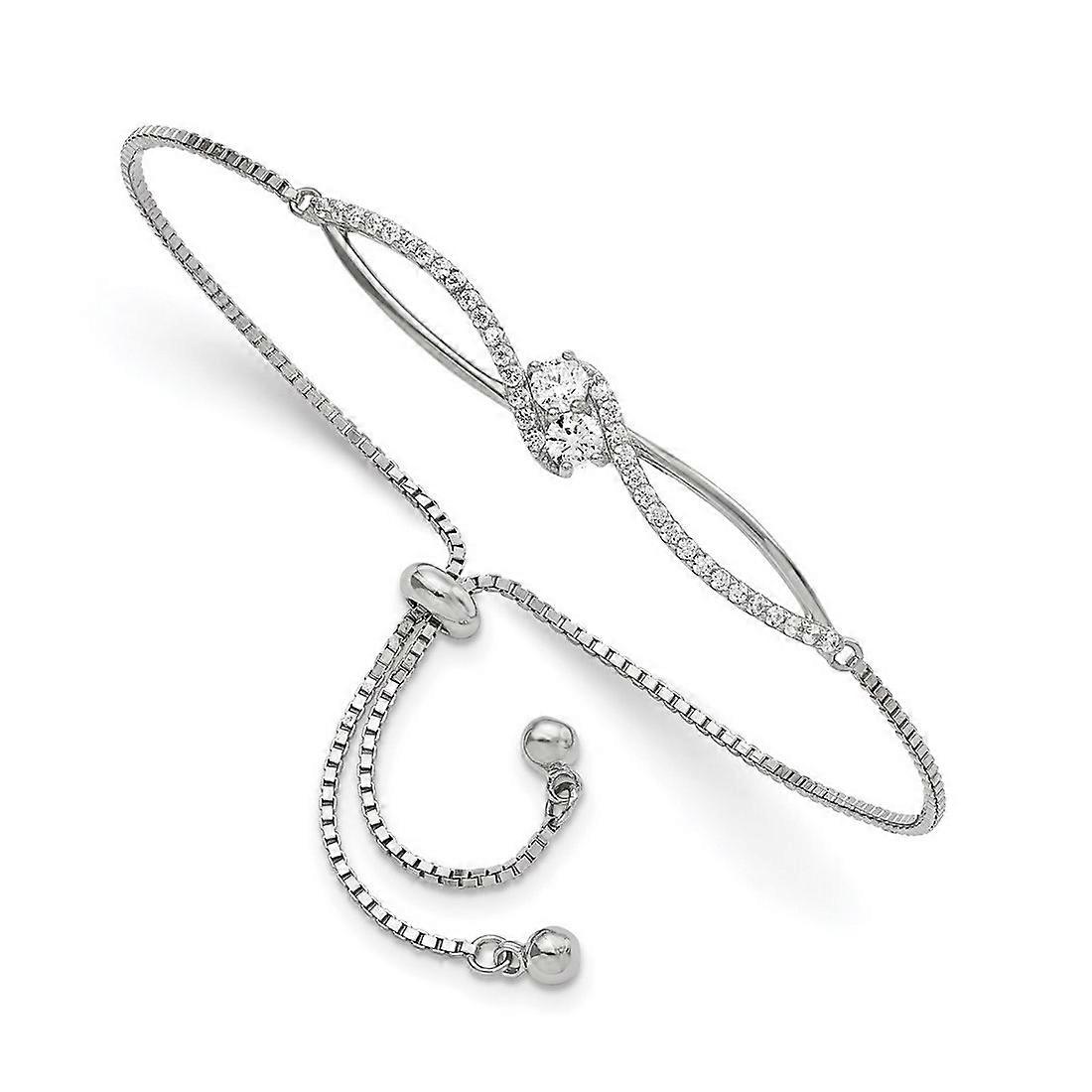 925 Sterling Silver Polished Rhodium Plated Cubic Zirconia Adjustable Bracelet Link-Bracelet for Women