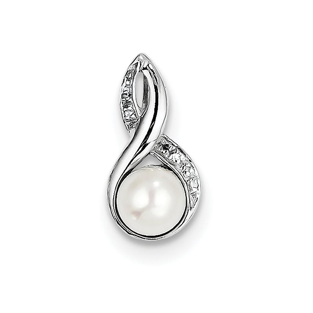 925 Sterling Silver Polished Rhodium 6mm Freshwater Cultured Pearl and Diamond Pendant Necklace-Pendant for Women