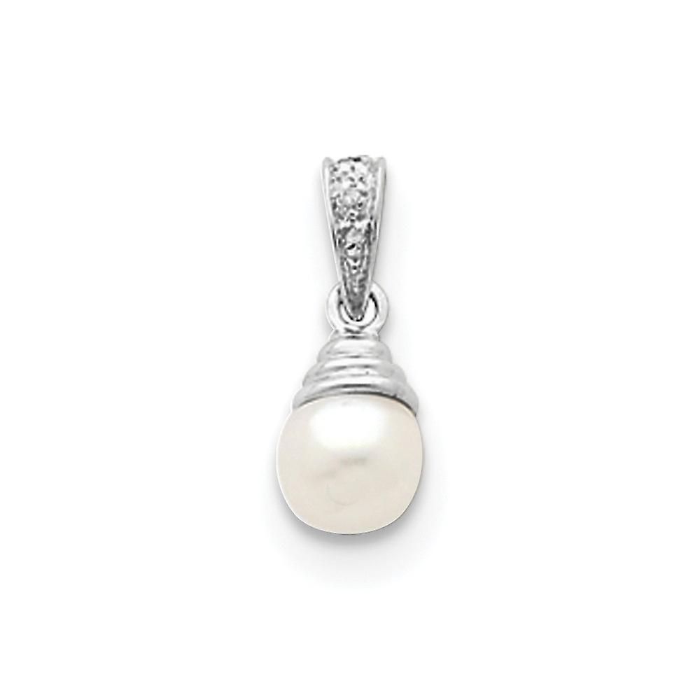 925 Sterling Silver Polished Rhodium 6mm Freshwater Cultured Pearl and Diamond Pendant Necklace-Pendant for Women
