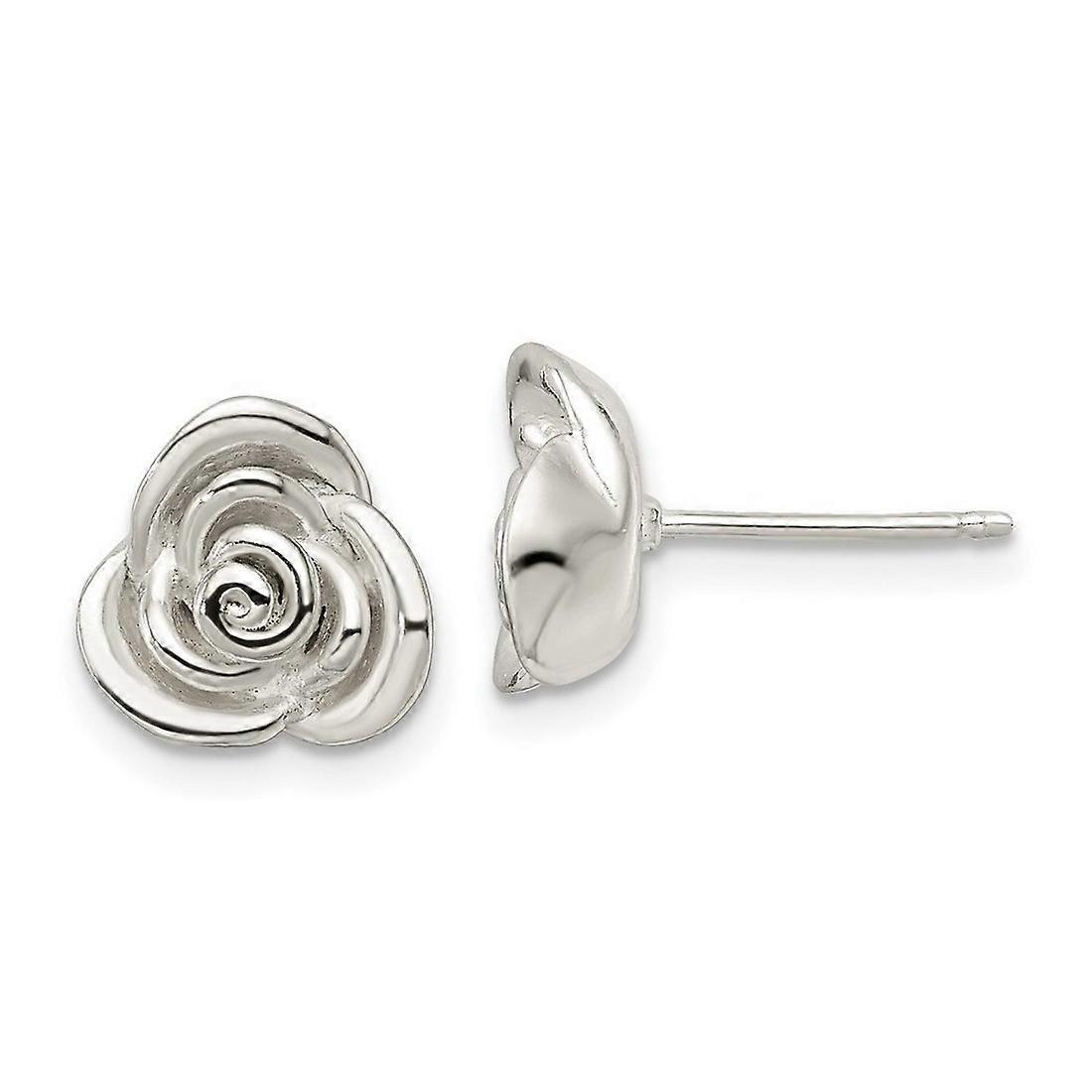 925 Sterling Silver Polished Rose Post Earrings 10.1x10.16mm Wide Stud Earring for Women - 1.3 Grams