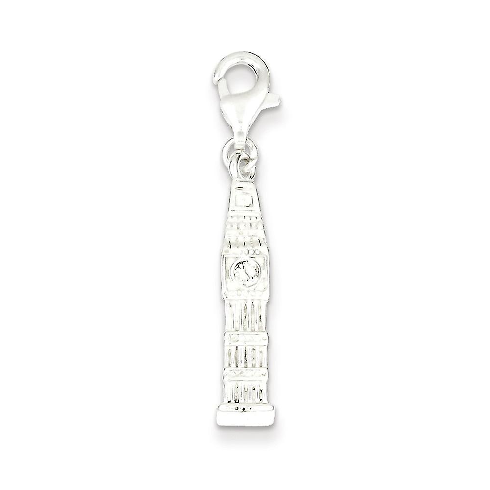 Sterling Silver Polished Clock Tower With Fancy Lobster Clasp Charm - Measures 34.85x5.3mm Wide - 3.5 Grams in Sterling Silver - - Width of Item: 5.3 mm - Length of Item: 34.85 mm - Finish: Polished - Feature: Lobster Clasp - Feature 2: 3D - - This Item Does Not Ship With a Chain