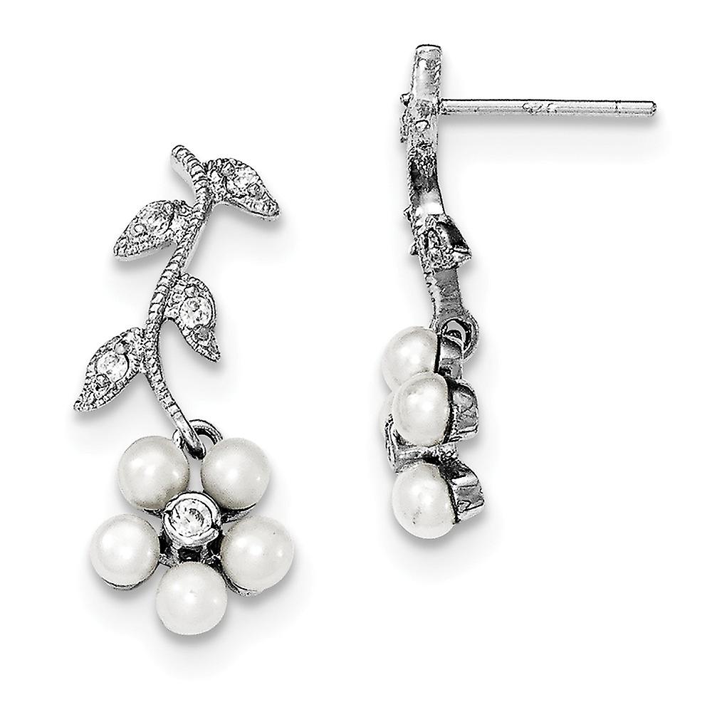 925 Sterling Silver Polished Freshwater Cultured Pearl Cubic Zirconia Post Earrings 27x11mm Wide Stud Earring for Women
